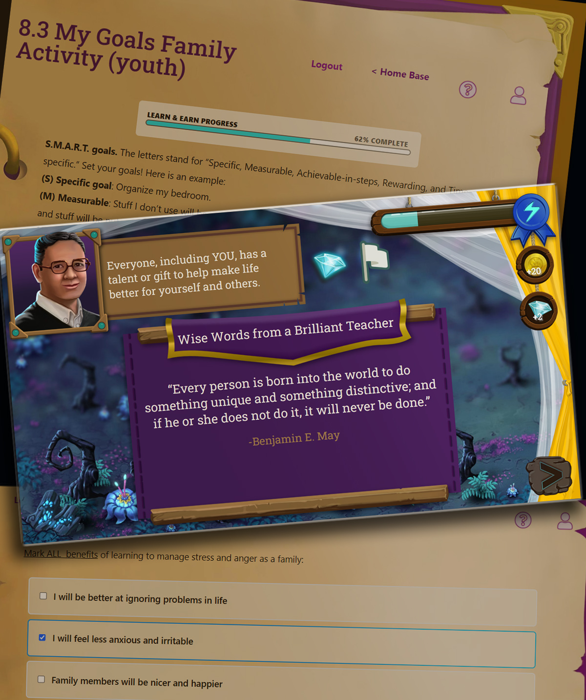 - Ten interactive lessons with separate tracks for parents and kids (broken into 15min sections)